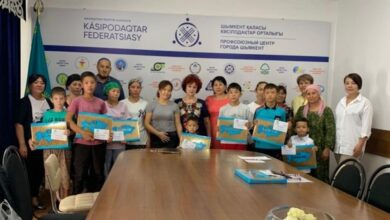 Шымкентте кәсіподақ мүшелеріне «Мектепке жол акциясы» аясында көмек берілді