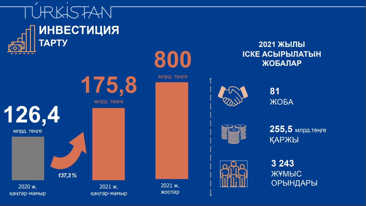 Ранее сообщалось, что за последние три года инвестиции в основной капитал в Туркестанской области составил свыше 1,5 трлн тенге.