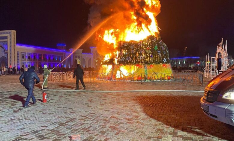 Таразда алаңға орнатылған қаланың бас шыршасы өртеніп кетті, – деп хабарлайды Basnews.kz тілшісі.