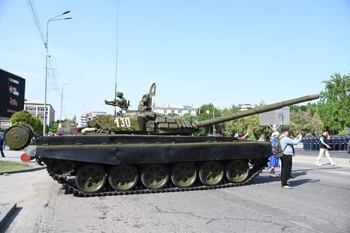 Сонымен қатар, алаңға жиналғандар Шымкент Әскери гарнизонының әскери техникаларының көрмесін тамашалады.