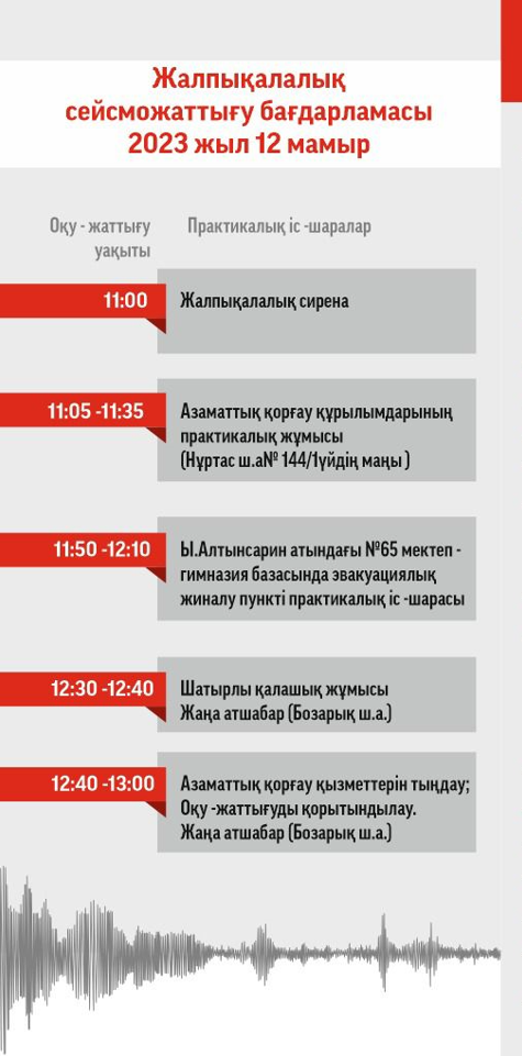 2023 жылғы 12 мамыр күні «Жалпы қалалық сейсмикалық жаттығу өтеді.