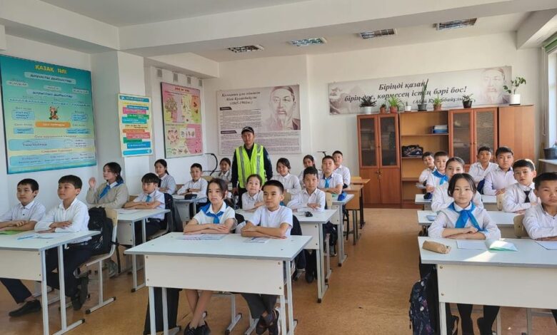 Шымкент: Тәртіп сақшылар оқушылардың жол қауіпсіздігі бойынша сауаттарын арттыруға атсалысып жатыр