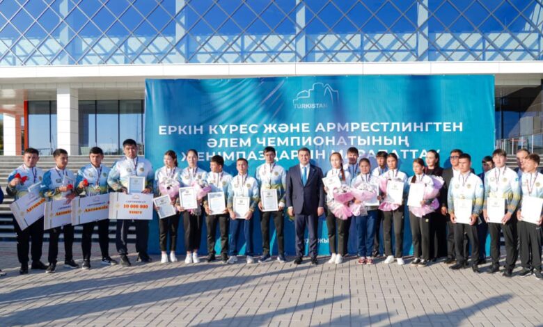 Түркістан облысының спортшылары 2025 жылдың 9 айында Қазақстан чемпионаттарында – 1060 медаль, Азия чемпионаттарында – 109 медаль, әлем чемпионаттарында 79 медаль жеңіп алды. Бүгін солардың бірқатарын Түркістан облысының әкімі Нұралхан Көшеров арнайы марапаттап, құрмет көрсетті. Бекзат Саттарханов атындағы спорт кешенінде өткен кездесуде жуырда еркін күрестен және армрестлингтен әлем чемпионатында ел сенімін ақтаған спортшылар марапатталды.