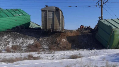 В Карагандинской области 12 вагонов грузового поезда сошли с рельсов