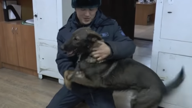 Военнослужащий встретился со служебной собакой, похищенной во время массовых беспорядков в Алматы