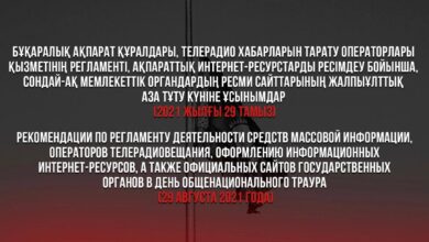 БАҚ, телерадио хабарларын тарату операторлары қызметінің регламенті, ақпараттық интернет-ресурстарды ресімдеу бойынша, сондай-ақ мемлекеттік органдардың ресми сайттарының жалпыұлттық аза тұту күніне ұсынымдар (2021 жылғы 29 тамыз)