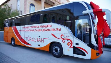 ТҮРКІСТАНДА РАЙЫМБЕК СЕЙТМЕТОВ ТЕАТРЫНА ЖАҢА АВТОБУС ТАБЫСТАЛДЫ