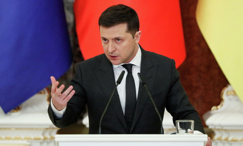 Зеленский сказал, что против Украины ведут войну на разных фронтах. По мнению президента, на «дипломатическом фронте» Россия требует лишить Украины будущего в ЕС и НАТО, а на «информационном» — заставить сомневаться в возможности украинской армии дать отпор и принудить к поражению.
