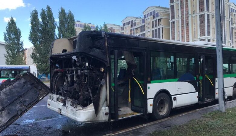 27 июля в 14:45 пожарные подразделения выехали на поступившее сообщение о том, что по ул. Керей-Жанибек хандар и ул. Туркестан горит автобус. По прибытии пожарных установлено, что горит двигательный отсек маршрутного автобуса. Пожар ликвидирован в 14:58, — передает Пресс-служба МЧС РК