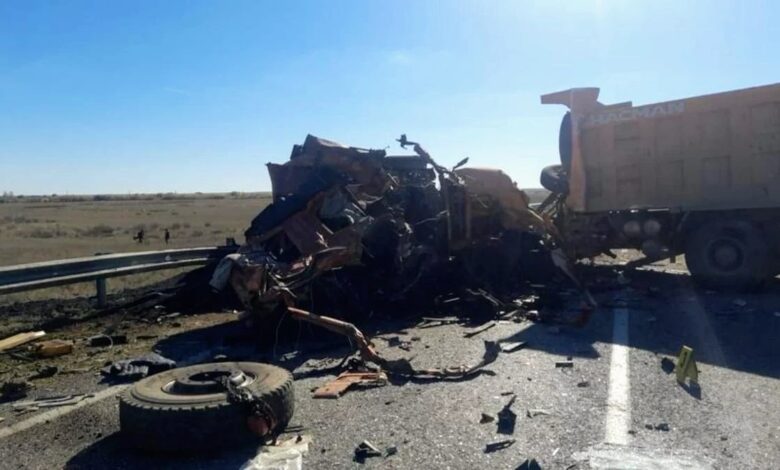«9 октября примерно в 13 часов 47-летний водитель автомашины Shacman, двигаясь со стороны района Мартук в направлении города Актобе, на 67 км автодороги Актобе — Оренбург, не справившись с рулевым управлением, выехал на полосу, предназначенную для встречного движения, и допустил столкновение с автомашиной Shacman под управлением 35-летнего жителя города. В результате ДТП двое водителей скончались на месте происшествия», — говорится в сообщении.