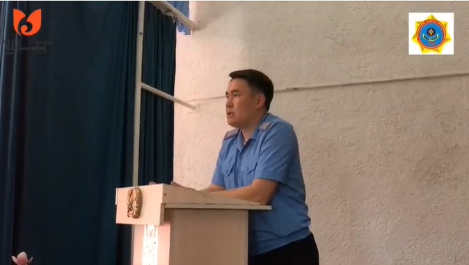 Еңбекші ауданының төтенше жағдайлар басқармасының қызметкерлері мектеп оқушыларына түсіндірме сабақтарын өткізуде.