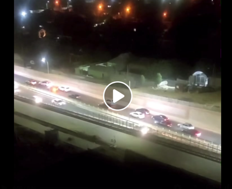 Жергілікті полиция қызметкерлері құқық бұзушыларды тоқтату үшін көшені екі жағынан жауып тастады