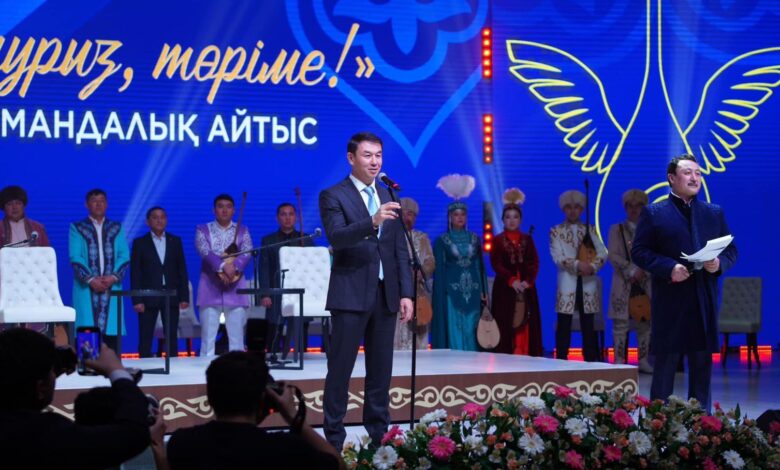 – Қос мереке қарсаңында Түркістан төрінде бастау алған бүгінгі шараның өңір руханиятын дамытуға ықпалы зор деп есептеймін. Мемлекет басшысының бастамасымен биылғы жылы Наурыз мейрамы жаңа серпінде атап өтілуде. Кеше еліміз бойынша «Көрісу күні – Амал мерекесі» атап өтілсе, бүгінгі күн қайырымдылыққа, ізгілікке бағытталып отыр. Төл өнеріміз – айтыс жаңаша форматта қарқын алды. Дәстүрлі ән өнері мен күй, терме жанрларының жаңғыруы – ұлттық өнерге жасалған оң бетбұрыс деп білемін. Сондықтан қасиетті Сыр даласынан басталып, Түркістан топырағына табан тіреген бүгінгі жобаның халыққа берері мол. Қазіргі таңда Түркістанға ерекше мәртебе беру туралы бастама көтеріліп, арнайы заң жобасы әзірленді. Биылғы жылы Түркістан – Түркі әлемінің туристік астанасы атанып отыр. Ел мәдениетін дамытуға бағытталған шаралардың көптеп өтуі – осы бастамалардың жүзеге асуына оң ықпалын тигізеді деп сенемін. Жамбыл облысы мен Түркістан өңірінің командалық өнер додасының көшін Мәжіліс депутаты Аманжол Дүйсенбайұлына, Қазақстанның халық ақыны Әсия апамызға, барлық өнер майталманына зор алғыс білдіремін. Алдағы уақытта да Түркі әлемінің рухани бағдарына айналған шаһарда мәдениеттің өркендеуіне бағытталған жаңа жобалар жалғаса береді, – деген облыс әкімі қос өңірдің өнерпаздары сәттілік тіледі.