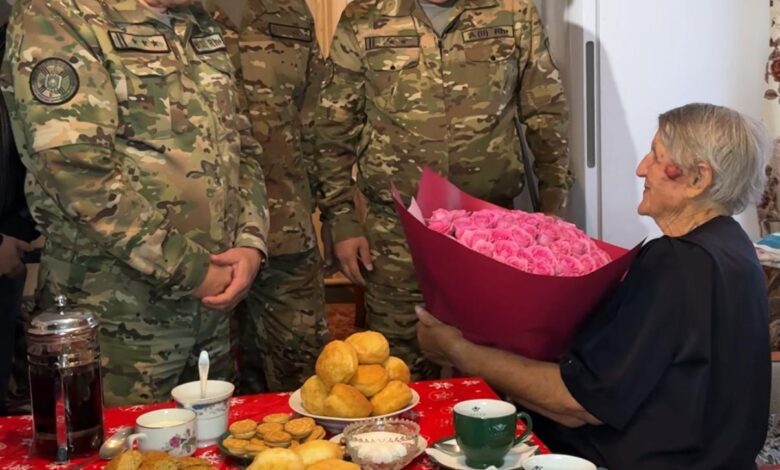 Заместитель начальника Главного управления воспитательной и социально-правовой работы Главного командования Нацгвардии полковник Арман Бутанов и заместитель командующего Региональным командованием «Шығыс» по воспитательной и социально-правовой работе подполковник Арман Сеитов вручили ветерану благодарственное письмо, подарили цветы, а также организовали теплое чаепитие с бауырсаками. Угощение подготовили военнослужащие женсовета воинской части 3477.