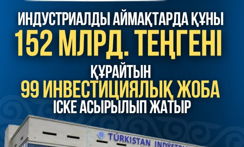 Түркістан облысындағы индустриалды аймақтарда құны 152 млрд. теңгені құрайтын 99 инвестициялық жоба іске асырылып жатыр